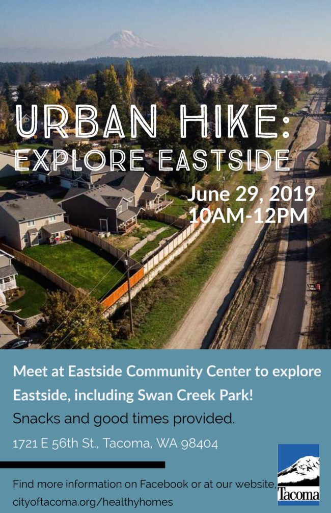 Walk. Share. Learn. Explore. Join us at our Free Upcoming Event-Urban Hike: Explore Eastside Join the Healthy Homes, Healthy Neighborhoods program for a free urban hike and tour around Tacoma’s Eastside, including parts of Swan Creek Park! The walk will begin and end outside of Eastside Community Center. Light refreshments and water refills will be…